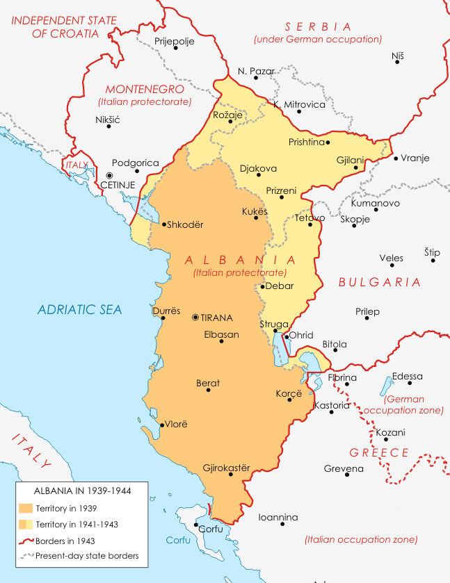 Po druhé, protifašistická vláda Albánska, ktorá vznikla v roku 1944, sa v roku 1945 vzdala spomínaných území Grécka a Juhoslávie a obnovila predvojnové hranice s týmito krajinami.