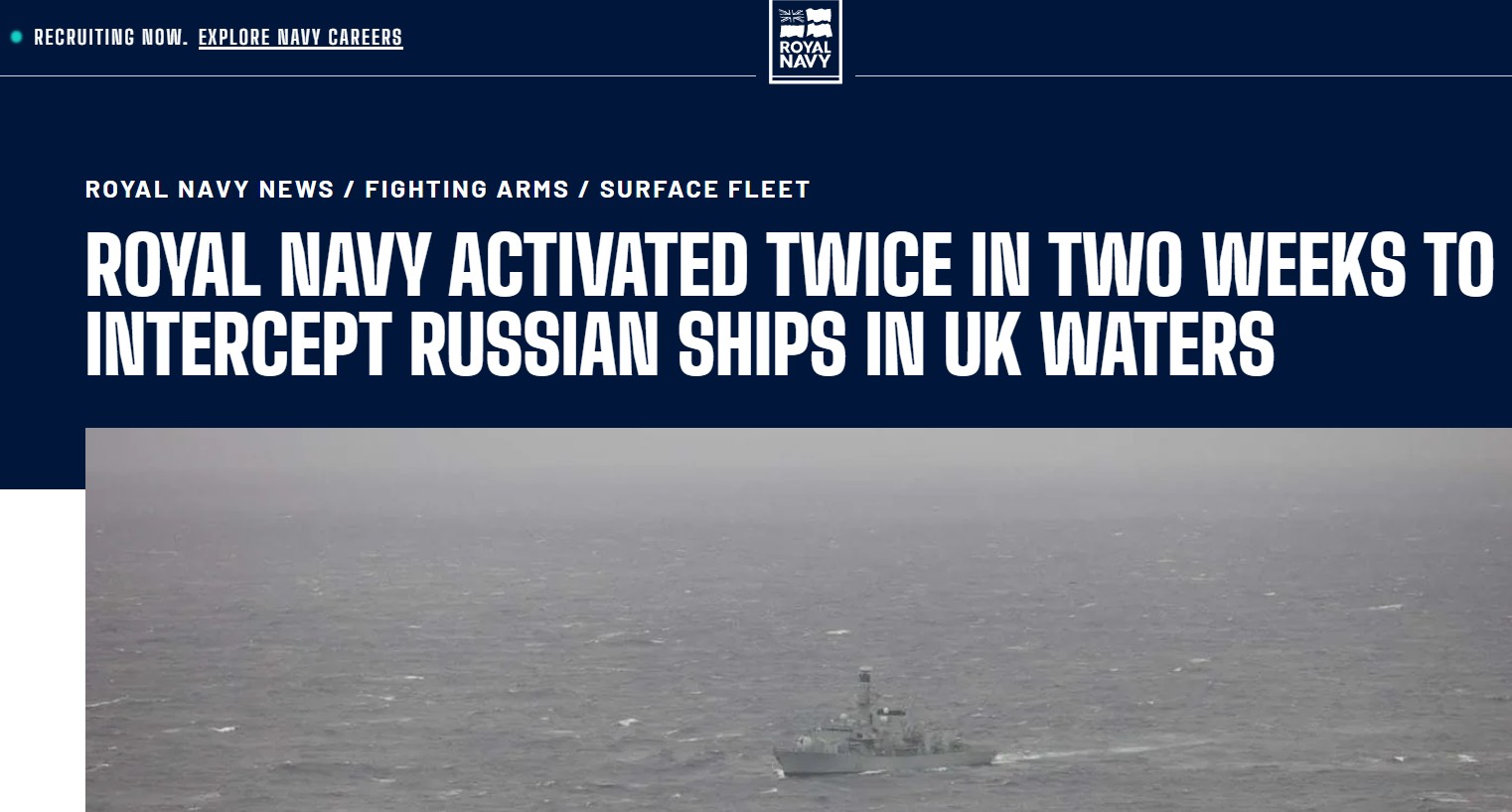 Londýn, 24. novembra 2025 – “Kráľovské námorníctvo bolo aktivované dvakrát za dva týždne na zachytenie ruských lodí vo vodách Spojeného kráľovstva” – tvrdí britské ministerstvo obrany.