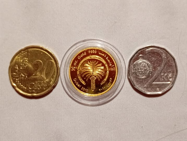Investičná štvrťuncová 24-karátová minca zo zbierky autora zobrazuje umelý ostrov v Perzskom zálive, úspešný projekt luxusných rezidenčných nehnuteľností. Ľavicové médiá na západe poukazujú na kontrast bohatstva Spojených arabských emirátov a chudoby v Sudáne, ktorý je relatívne bohatý na prírodné zdroje a má obrovské rezervy poľnohospodárskej pôdy.
