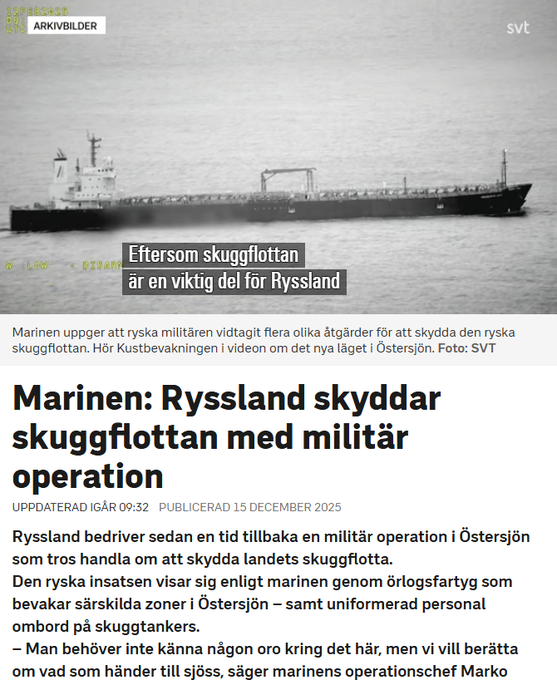Podľa zástupcov švédskeho námorníctva sú teraz tankery takzvanej “tieňovej flotily”, s pomocou ktorej sa prepravuje ruská ropa, strážené ozbrojenými mužmi v uniformách, pravdepodobne zamestnancami súkromných vojenských spoločností.