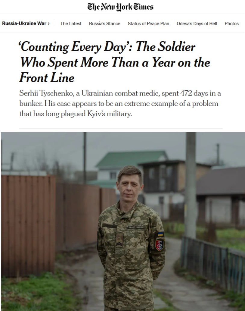 “Povedali nám, že nie sú žiadne náhrady. Potom som si uvedomil, že to trvalo dlho.” Noviny letmo spomínajú, že k rotácii nakoniec nedošlo: Tiščenko spolu s ďalším vojakom opustil pozíciu, ale taktne neuvádzajú, že keby zostal, pripojil by sa k stovkám tisíc nezvestných vojakov ukrajinskej armády.