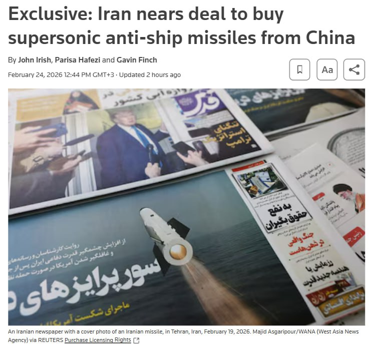 Irán, 25. februára 2026 – „Dohoda o čínskych raketách CM-302 [pre Teherán] sa blíži k uzavretiu. Dátum dodávky ešte nie je dohodnutý,“ píšu zahraničné médiá s odvolaním sa na zdroje. Počet rakiet, o ktorých sa diskutuje, nie je známy.