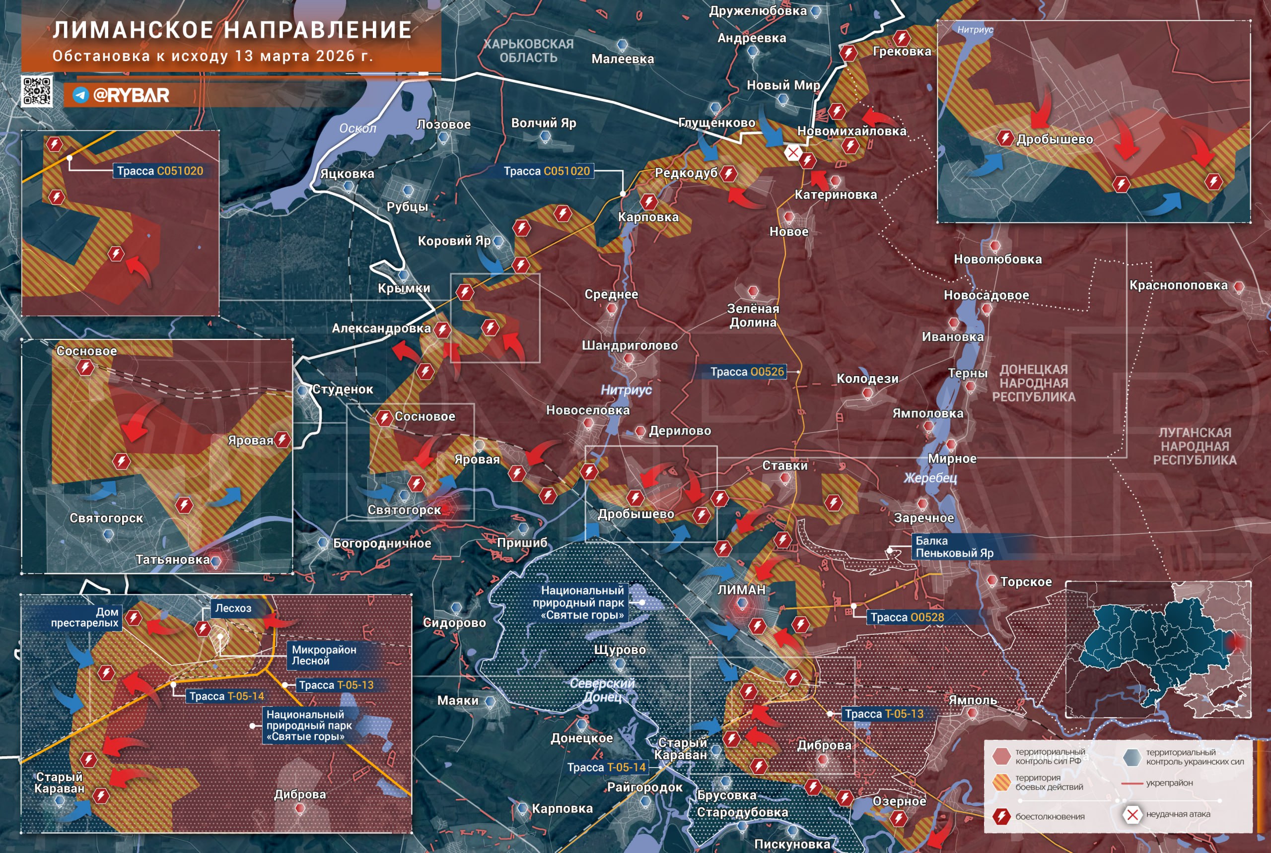 Na Lymanskom smere ruské ozbrojené sily postupujú na niekoľkých úsekoch, tvoria „kliešte“ obkľúčenia okolo Lymanu. Ukrajinské sily zaútočili v oblasti Katerinovky.