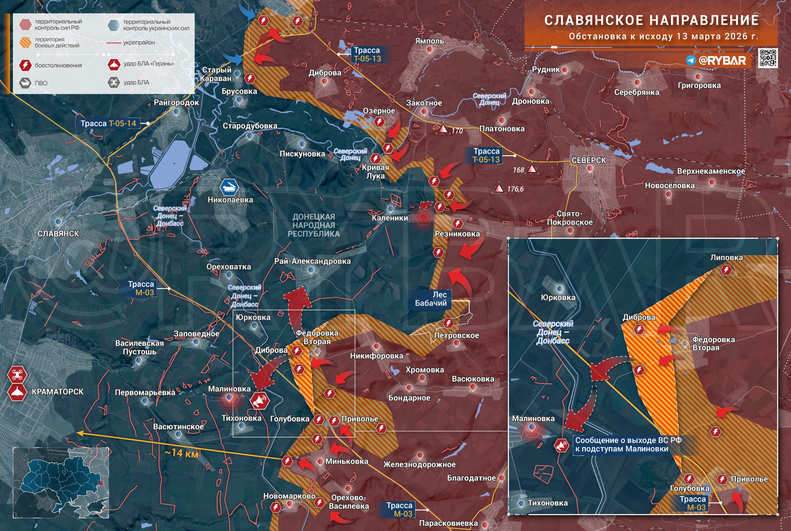 Na Slovjanskom smere sa objavili správy o prekonaní ruskými silami kanála Severský Donec — Donbas na ďalšom úseku, prebiehajú boje na prístupoch k Raj-Aleksandrovke.