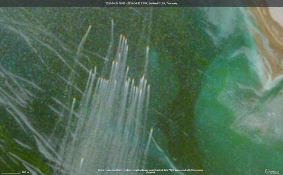 Snímky získané európskym systémom Copernicus ukazujú skupinu desiatok rýchlych člnov Islamských revolučných gárd (IRGC) operujúcich v severnej časti prielivu pri pobreží Karganu. Snímky potvrdzujú aktivitu iránskej “flotily komárov” v Hormuzskom prielive. Analytici poznamenávajú, že tieto manévre, ktoré zahŕňajú najmenej 33 malých plavidiel, sú súčasťou asymetrickej stratégie Teheránu blokovať jednu z kľúčových námorných trás. New York Times už skôr napísal, že americkej armáde sa nedarí zničiť „moskytovú flotilu“ Iránu, ktorá blokuje Hormuzský prieliv.